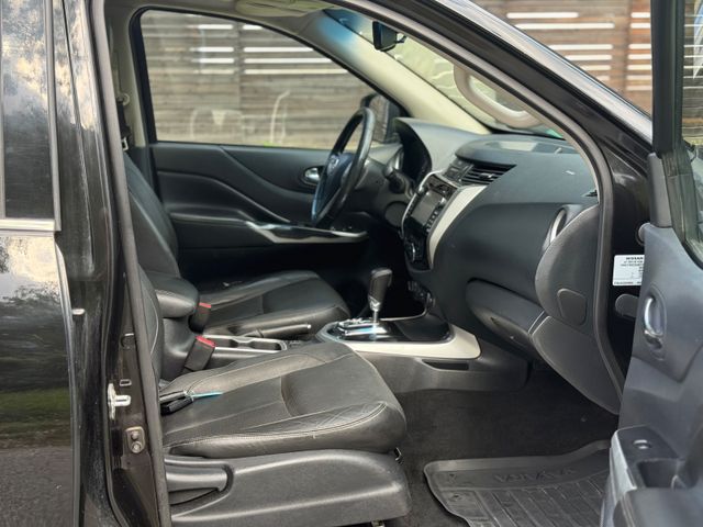 désactivation de l’airbag passager, airbags conducteur et passager, commandes audio au volant, pack d’équipements : système de navigation Nissan Connect avec moniteur de vision panoramique, allumage automatique des phares, rétroviseurs extérieurs rabattables électriquement, rétroviseurs extérieurs réglables électriquement. Rétroviseurs extérieurs réglables et chauffants, rétroviseurs extérieurs avec garniture chromée, affichage de la température extérieure, assistance au freinage d’urgence (Nissan Brake Assist), entourage chromé des feux antibrouillard, fonction d’éclairage d’accueil (Coming Home Lighting), différentiel à glissement limité, radars de stationnement arrière, système de freinage d’urgence autonome, système de contrôle de descente, système d’aide au démarrage en côte, système d’information du conducteur (FIS) avec écran couleur, vitres arrière électriques, pare-brise teinté, prétensionneurs de ceintures de sécurité, lunette arrière chauffante, rétroviseur intérieur à atténuation automatique, fixations ISOFIX pour sièges enfant, carrosserie double cabine, carrosserie pick-up, climatisation automatique bizone, airbag genoux côté conducteur, airbags rideaux, appuie-tête arrière, colonne de direction réglable, jantes alliage, moteur diesel 2.3L 140kW dCi, pot catalytique, pack esthétique, empattement de 3150 mm, roue de secours de taille normale, faibles émissions selon la norme Euro 6, essuie-glaces intermittents, toit ouvrant électrique, système de rails d’arrimage, bavettes arrière, bavettes avant, airbags latéraux, réglage électrique Siège conducteur réglable en hauteur, sellerie cuir, sièges avant chauffants, bouton de démarrage/arrêt, prise 12 V, pare-chocs arrière chromé, pare-chocs avant couleur carrosserie, marchepieds latéraux, vitres arrière teintées