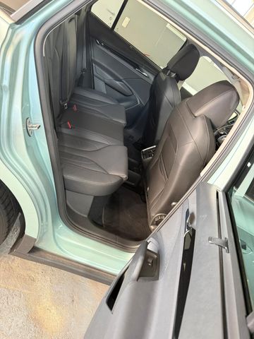 8 haut-parleurs, Airbag passager désactivable, Airbags conducteur et passager, Protection acoustique des piétons, Système audio extérieur (e-sound), Éclairage d’ambiance LED, Antipatinage (ASR), Type de transmission : Propulsion, Pack d’équipements : Stationnement, Rétroviseurs extérieurs électriques. Sièges réglables, chauffants et rabattables, à atténuation automatique, rétroviseurs extérieurs et poignées de porte couleur carrosserie, ordinateur de bord, pack chrome, encadrement chromé des vitres latérales, ciel de toit gris, barres de toit anodisées, pack Design Selection, pack Drive, moteur électrique 150 kW (70 kW en continu), systèmes d’assistance à la conduite : freinage en virage et manœuvre d’évitement, système d’alerte de collision avec freinage d’urgence en ville (radar-assiste avant), système d’assistance à la conduite : aide au démarrage en côte (Hill Holder), système d’assistance à la conduite : freinage multicollision (Multi Collision Brake), système d’assistance à la conduite : alerte de franchissement de ligne (Lane Assist), vitres électriques avant et arrière, système téléphonique mains libres avec Bluetooth, calandre chromée, cache-bagages/store enrouleur, transmission pour véhicule électrique, essuie-glace arrière, intérieur : inserts décoratifs laqués piano noirs, rétroviseur intérieur à atténuation automatique, fixations Isofix pour siège enfant à l’avant et à l’arrière, carrosserie : 5 portes, éclairage de plaque d’immatriculation à LED, tableau de bord numérique Combiné d’instruments (cockpit virtuel), sièges confort à l’avant, airbags rideaux, câble de recharge avec connecteur de type 2 (mode 3), capacité de recharge accrue de la batterie haute tension (125 kW), soutien lombaire sur le siège avant gauche, soutien lombaire sur le siège avant droit, colonne de direction réglable (verticalement/axialement), assistant d’éclairage (Coming Home, Leaving Home), accoudoir central arrière, services mobiles en ligne, système d’appel d’urgence, frein de stationnement électronique, radio numérique (DAB+), empattement de 2 765 mm, système de surveillance de la pression des pneus, dossier de la banquette arrière rabattable 1/3-2/3, chargeur rapide (prise CCS), airbags latéraux avant, airbag central avant, système de services à distance, direction assistée électrique (Servotronic), siège avant gauche réglable en hauteur, siège avant droit réglable en hauteur, sellerie cuir noir, SmartLink (Apple CarPlay et Android Auto), pare-soleil avec miroir (éclairage LED), commande vocale du système d’infodivertissement, bouton start-stop (système start/stop sans clé), prise (Connexion 12V) dans le coffre / zone de chargement, interface USB à l’avant (2 voies, type C), vitres teintées, SmartLink sans fil