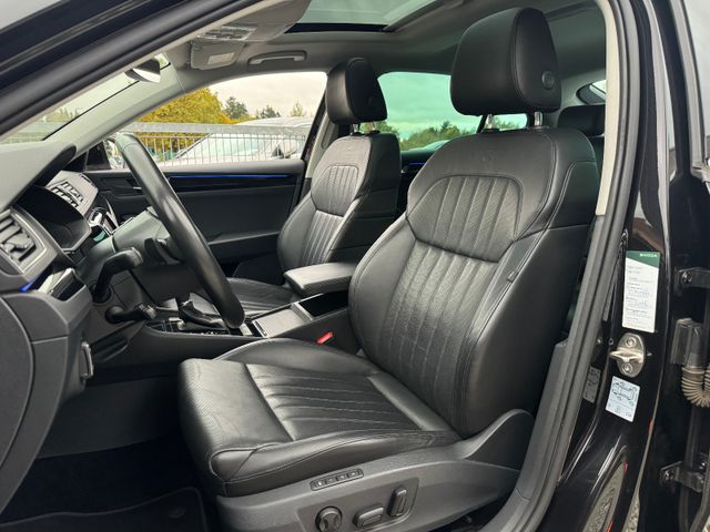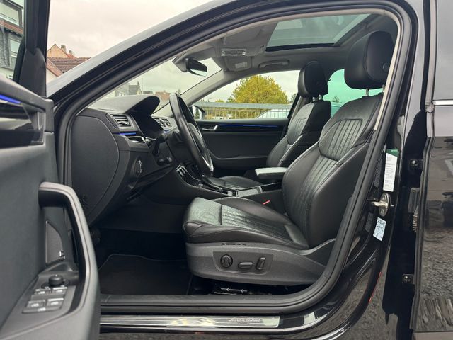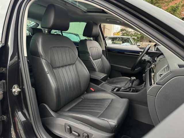 compartiment de rangement pour parapluie, désactivation de l’airbag passager, airbags conducteur/passager, vitres de portes avant acoustiques, éclairage d’ambiance LED, antipatinage (ASR), système audio Bolero (radio/CD, interface Bluetooth/USB, compatible MP3), pack d’équipements Green Tec, rétroviseurs extérieurs électriques, chauffants et rabattables avec fonction anti-éblouissement automatique et fonction mémoire, rétroviseurs extérieurs couleur carrosserie, phares bi-xénon avec feux de jour à LED, assistance au freinage, récupération d’énergie au freinage, garniture chromée sur les vitres latérales, système de chargement traversant (accoudoir central arrière), capteurs de stationnement avant et arrière, contrôle électronique de stabilité (ESP). Blocage de différentiel électronique (XDS), Système d’assistance à la conduite : Contrôle adaptatif du châssis (DCC), Système d’assistance à la conduite : Avertisseur de collision avec freinage d’urgence en ville (radar avant), Système d’assistance à la conduite : Aide au démarrage en côte (Hill Holder), Système d’assistance à la conduite : Freinage multicollision (Multi Collision Brake), Vitres électriques avant et arrière, Système téléphonique mains libres avec Bluetooth, Éclairage d’ambiance avant et arrière, Boîte à gants éclairée, Inserts décoratifs noir laqué, Sellerie cuir L&K, Éclairage intérieur LED, Rétroviseur intérieur à atténuation automatique, Fixations Isofix pour sièges enfant à l’arrière, Carrosserie : 5 portes, Climatisation automatique Climatronic bizone, Airbag genoux conducteur, Hayon électrique (ouverture et fermeture), Airbags rideaux, Appuie-tête arrière, Appuie-tête avant, Déverrouillage des dossiers de sièges arrière depuis le coffre, Soutien lombaire pour le siège conducteur, Volant 3 branches en cuir avec commandes multifonctions et palettes au volant, Colonne de direction réglable en hauteur et en profondeur, Assistant d’éclairage (Coming Home, Leaving Home), connexion audio en ligne dans la console centrale, Lounge Step (tapis de sol avec repose-pieds), écran couleur Maxi-DOT, moteur TDI 2,0 L – 140 kW, phares antibrouillard avec fonction d’éclairage d’intersection, filet de coffre, réception radio numérique (DAB+), kit de réparation de pneus, système de surveillance de la pression des pneus, dossier de siège arrière rabattable, faibles émissions selon la norme Euro 6, gicleurs de lave-glace chauffants, essuie-glaces Aero (essuie-glaces plats), airbags latéraux avant, vitres latérales arrière et lunette arrière teintées (SunSet), direction assistée électronique (Servotronic), siège conducteur réglable en hauteur, siège passager avant réglable en hauteur, sièges avant à réglage électrique. Sièges avant réglables (à gauche avec mémoire), chauffants, dossier du siège avant droit rabattable, SmartLink (MirrorLink, Apple CarPlay et Android Auto), pare-soleil gauche et droit avec miroir, système audio Canton, système Start/Stop, prise 12 V dans le coffre, prise 12 V sur la console centrale avant, vitres teintées, points d’arrimage dans le coffre